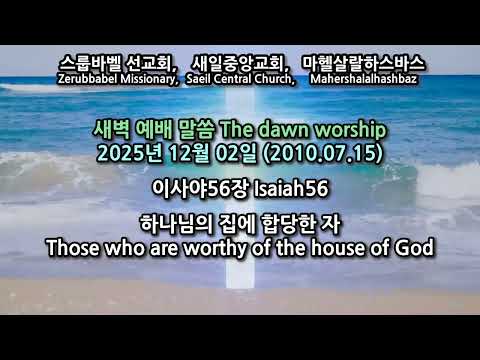 스룹바벨 선교회 이사야 56장 Isaiah56 : 하나님의 집에 합당한 자 Those who are worthy of the house of God [2025.12.02 (2010.07.15) 화 새벽 예배 Tuesday Dawn Worship