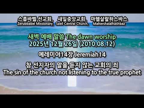 스룹바벨 선교회 예레미야 14장 Jeremiah14 : 참 선지자의 말을 듣지 않는 교회의 죄 The sin of the church not listening to the true prophet [2025.12.26 (2010.08.12) 금 새벽 예배 Friday Dawn Worship
