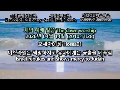 스룹바벨 선교회 호세아01장 Hosea01 : 이스라엘은 책망하시고 유다에게는 긍휼을 베푸심 Israel rebukes and shows mercy to Judah [2026.04.14 (2010.11.28) 화 새벽 예배 Tuesday Dawn Worship