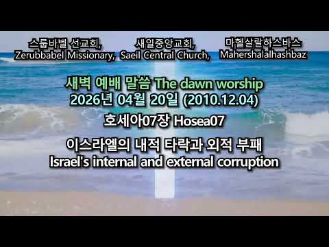 스룹바벨 선교회 호세아07장 Hosea07 : 이스라엘의 내적 타락과 외적 부패 Israel's internal and external corruption [2026.04.20 (2010.12.04) 월 새벽 예배 Monday Dawn Worship